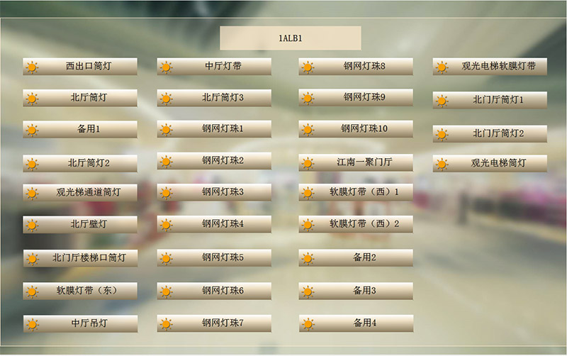 智能照明公共照明控制界面見下圖,主要實現公共照明控制,可統一控制,也可單獨控制,控制狀態可在界面上直接顯示出來,同時可以設置各照明回路自動亮滅時間。