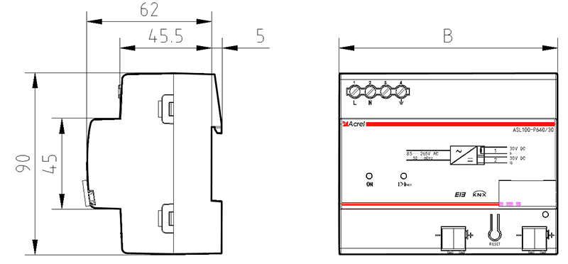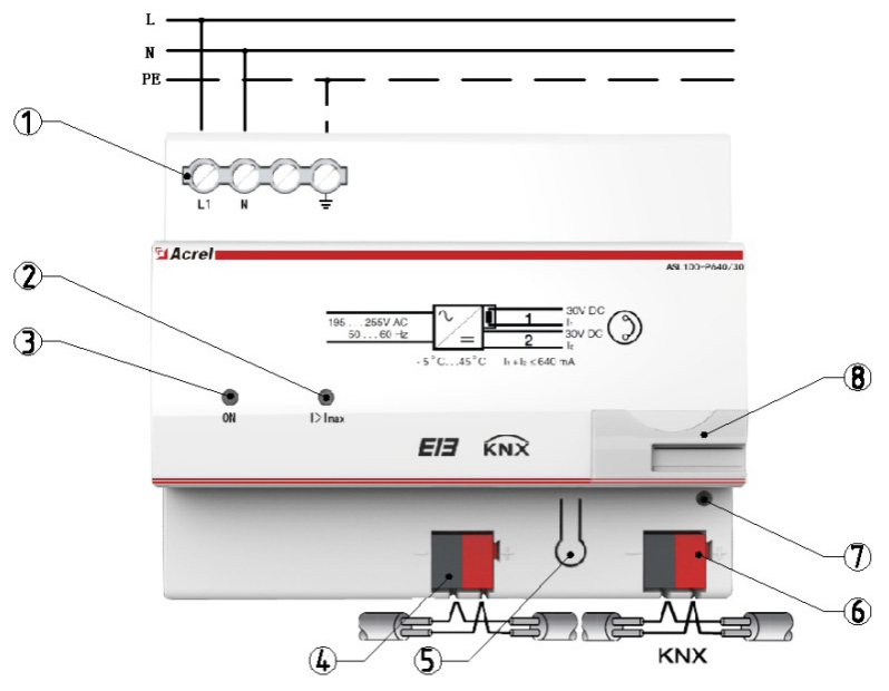 ASL100-P640/30總線電源模塊,是Acrel-bus智能照明控制系統的總線電源,總線上的所有控制模塊通過電源內部的扼流器件實現和電源的耦合。總線電源是通過KNX總線端子和KNX總線線纜連接其他控制模塊,為系統供電,是實現照明系統的智能化控制的必備元件。